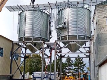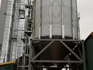 В этих моделях можно использовать механическую или пневматическую загрузку. Зерновые силосы с конусообразным дном установлены на опорах. Имеют вмонтированные смотровые окошки, позволяющие контролировать количество хранимого зерна. Облегчают выгрузку благодаря гравитационному выбору зерна.